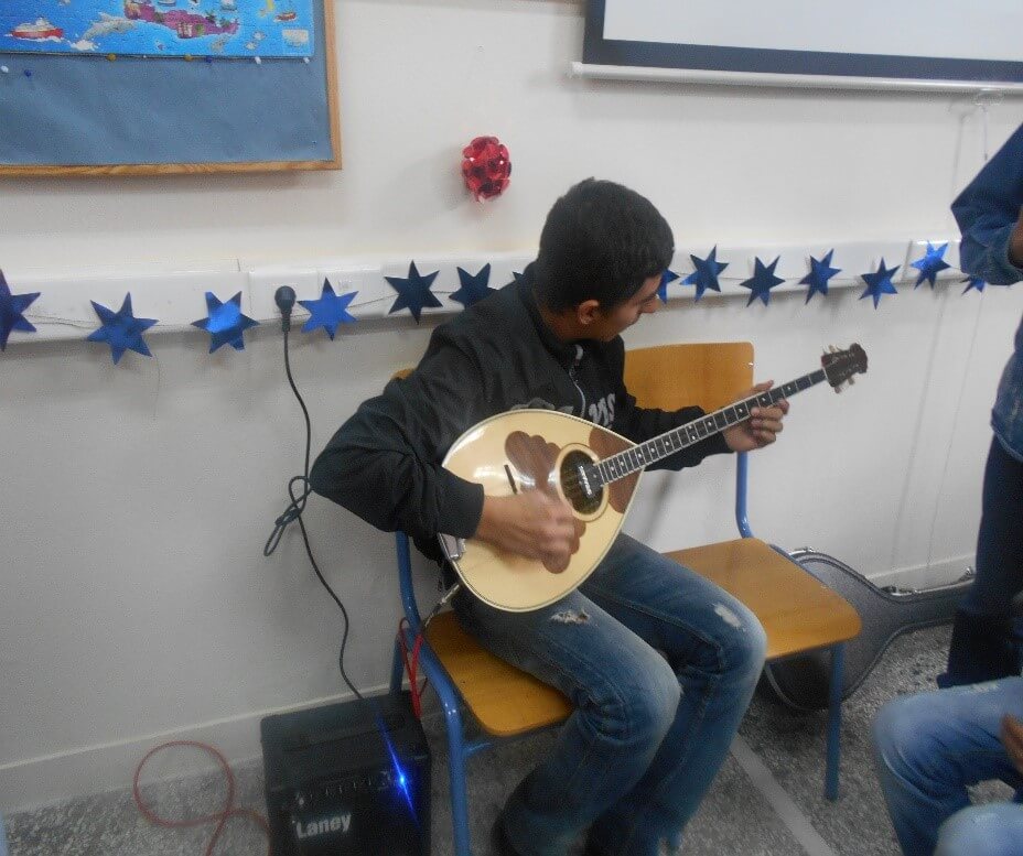 Η έκπληξη φέτος ήρθε από έναν μαθητή του Σχολείου, ο οποίος συνόδεψε τα κάλαντα παίζοντας μπουζούκι.